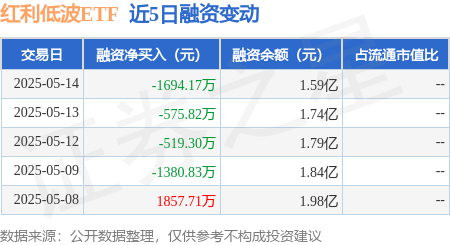 红利低波ETF:5月14日融资买入2148.6万元,融资融券余额1.59亿元